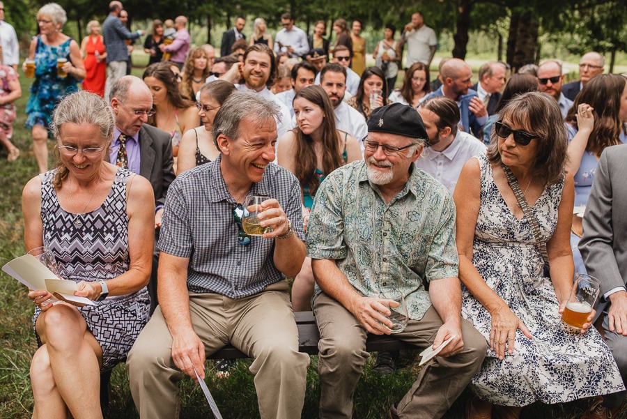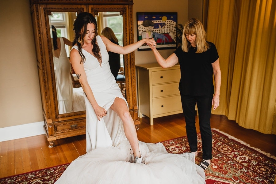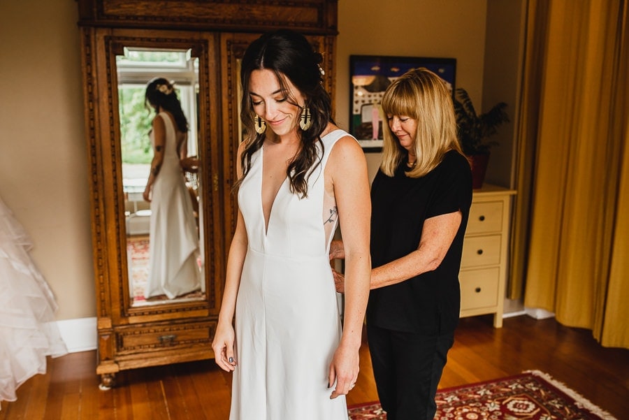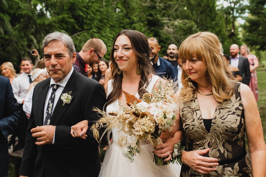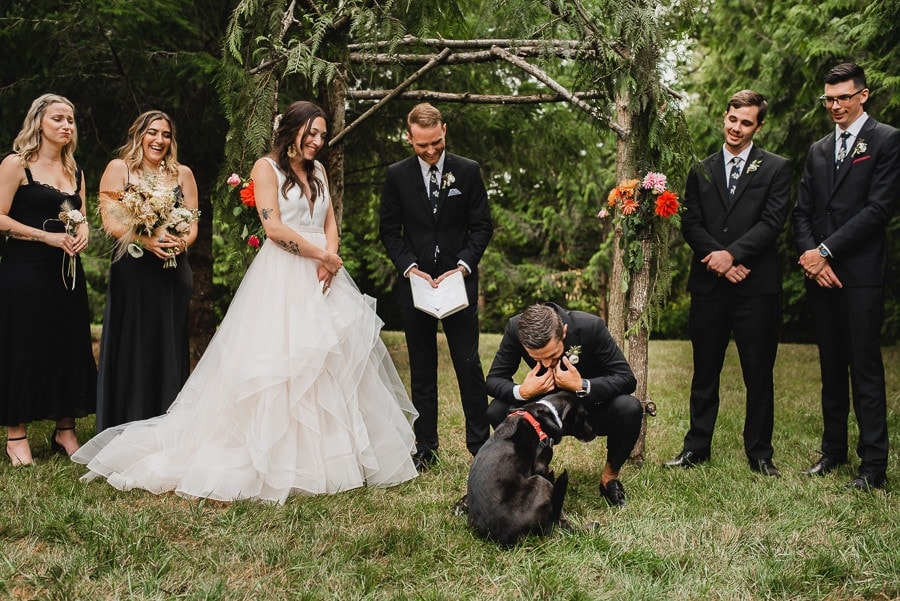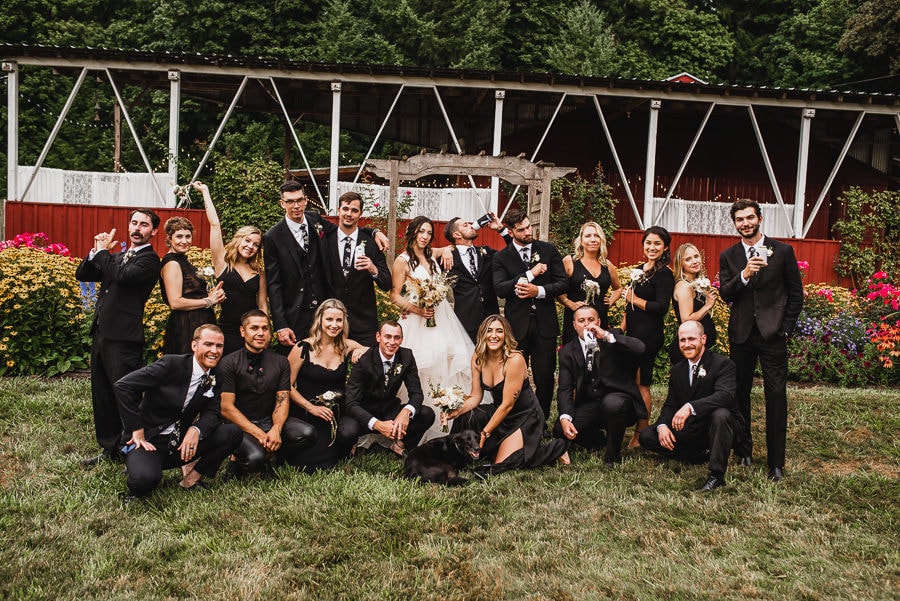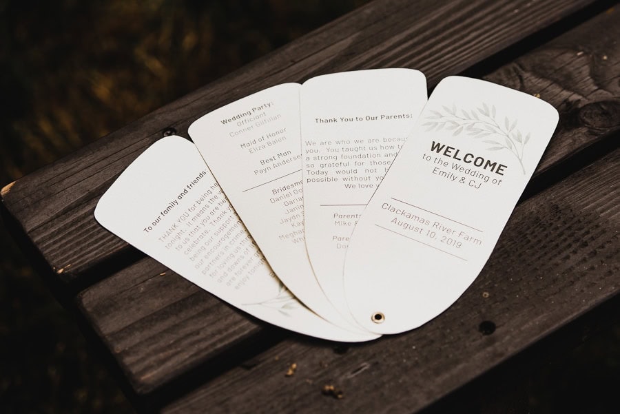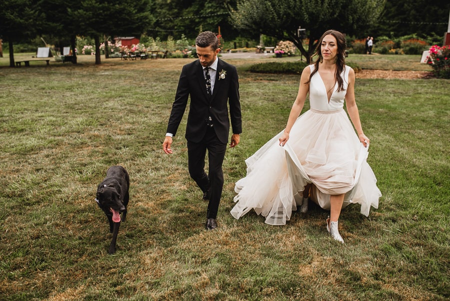 Two particular details of note that stood out to me at this Clackamas River Farm wedding: Emily wore a creative Carrie Bradshaw-inspired dress consisting of a standalone dress that would have been gorgeous on it’s own and a puffy skirt that later came off during the reception. And CJ had custom skateboard decks designed for each of his groomsmen. Each fit their personalities. The wedding overall was effortlessly hip while thoroughly sentimental throughout. I don’t think I’ve seen so many guests simultaneously choked up with tears and stricken with laughter.