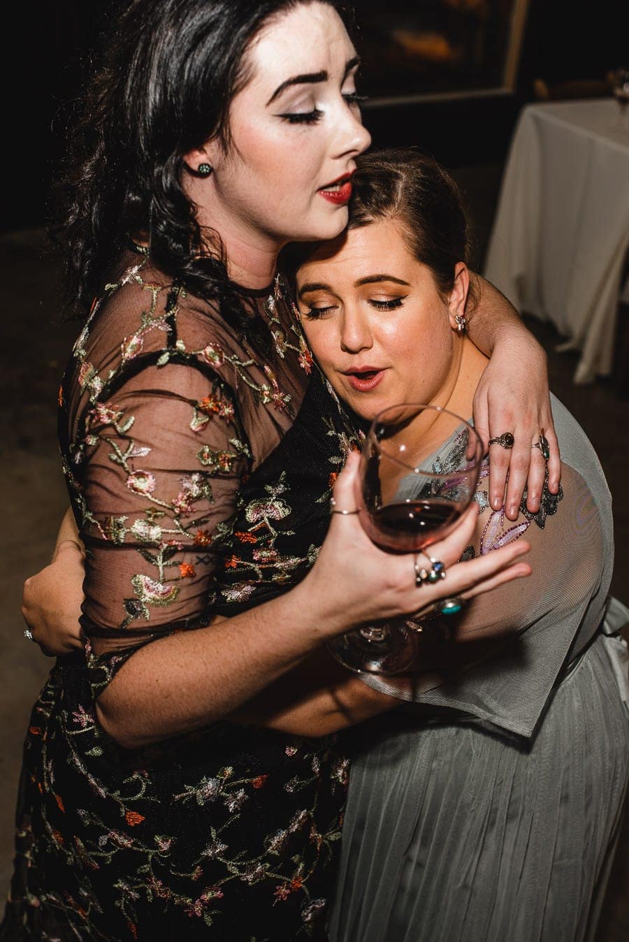 It was my first time photographing a ceremony where the bride and groom jump over a broom at the end, so I thought that was a lot of fun. They also incorporated special wooden Welsh spoons into their reception dinnerware. Their reception tables were named for their favorite drag queens. And at the head table they placed two golden animal totems representing them, an owl and an elephant. Very cute!